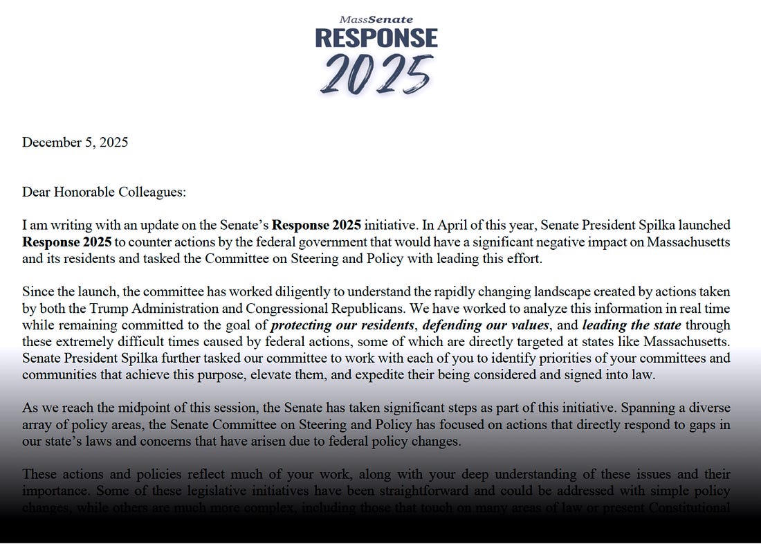 That's why the Senate has spent the past year examining ways to protect our residents, defend our values and lead Massachusetts during the second Trump administration.
