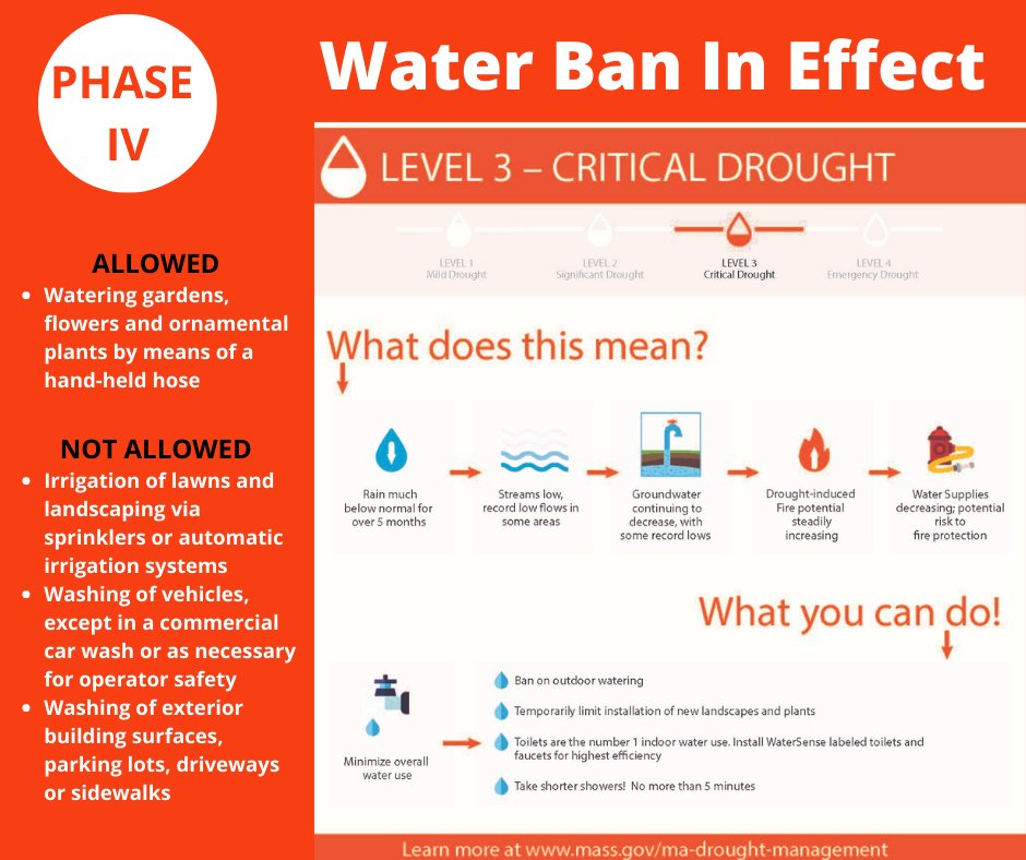 The Town of Franklin has entered Level 3 Critical Drought status which has triggered the phase IV water ban which will go into effect August 6th, 2022 at 12AM.